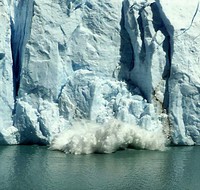 southern arms of Lago Argentino. Massive calving blocks of ice appear