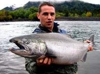 a salmon, Coho, or trout among the pristine beauty of the Puelo. In